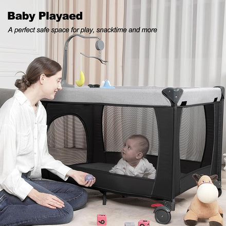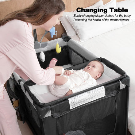 • 【Handy Diaper Changer and Recreation Space】---The diaper table is designed to make it easier for mom to change baby's diaper more easily, and the comfortable playard provides independent space for baby to rest and play