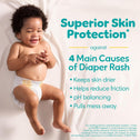 • Pampers Swaddlers diapers offer superior skin protection against four main causes of diaper rash (elevated pH, mess on skin, friction, overhydration)
