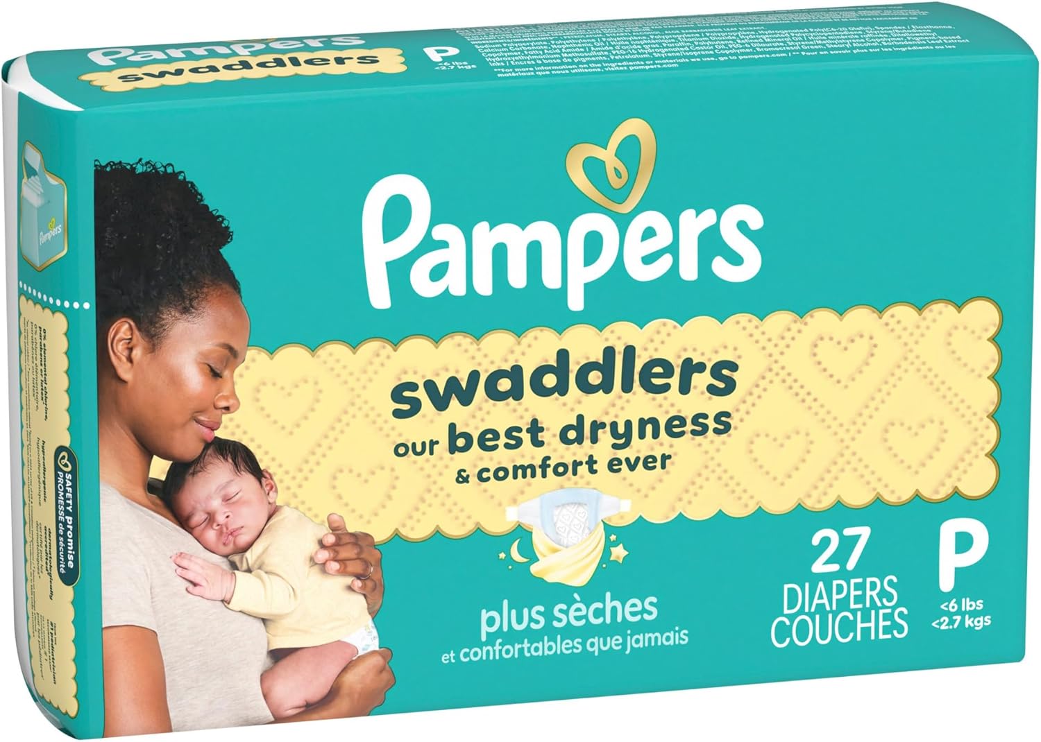 Pampers Baby Diapers - Swaddlers - Size P1, 27 Count, Ultra Absorbent Disposable Preemie Diaper