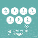 • Color-changing wetness indicator on sizes N, 1, and 2