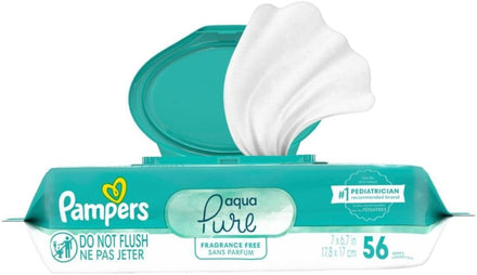 • 672 Wipes in 12 Packs of Pampers Aqua Pure Sensitive Baby Wipes, 99% Water, Hypoallergenic, Unscented Baby Wipes