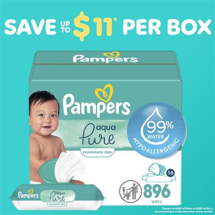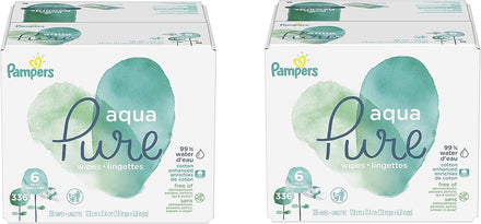• 336 Wipes in 6 Packs of Pampers Aqua Pure Sensitive Baby Wipes, 99% Water, Hypoallergenic, Unscented Baby Wipes