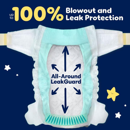 • Our overnight diapers feature Dual Leak-Guard Barriers to provide all-night protection where leaks happen most even for heavy wetters.