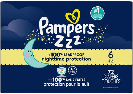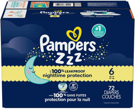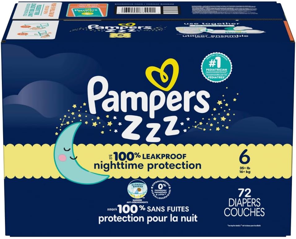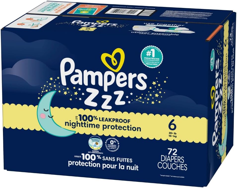 Pampers Overnight Diapers - Swaddlers Overnights - Size 6, 72 Count, Disposable Baby Diaper, Night Time Leak and Skin Protection