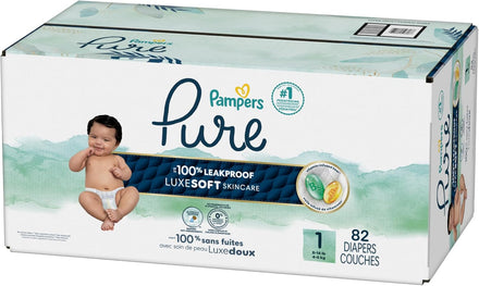 Pampers Pure Protection Baby Diapers, Size 1 (8-14 lbs), 82 Count, Up to 100% Leakproof, Premium Plant-based Skin Protection, Hypoallergenic Soft Diapers