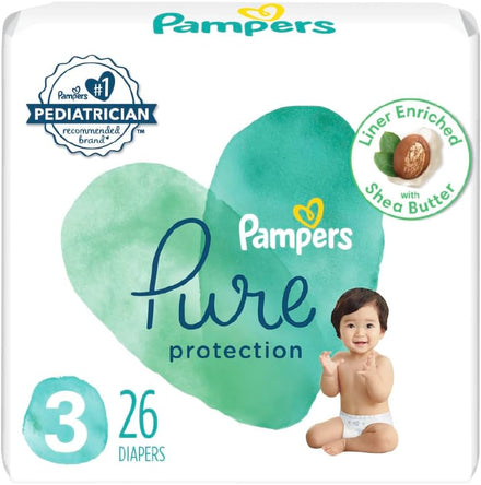 Your search is over. Everything you’ve been waiting for in a diaper, you’ll find with Pampers Pure. Our most premium protection for your newborn. MADE FOR SKIN HEALTH We've carefully crafted Pampers Pure diapers with plant-based ingredients and a shea butter infused liner that moisturizes to help nourish baby's skin. Pampers Pure Protection diapers are irresistibly soft and breathable. Now with NEW & IMPROVED softness! 2x softer than Honest diapers to help keep your baby comfy. Our luxury diapers are approved by the Skin Health Alliance. Use with Pampers Pure Aqua wipes to help protect baby's skin. LEAKAGE PROTECTION Up to 100% leakproof plant-based skin protection*. Pampers Pure Protection features an absorbent Lockaway Core that stays 2X drier** for healthy skin and a Blowout Barrier that helps prevent blowouts. PROTECTION YOU CAN TRUST The ingredients we've chosen to leave out are just as important. That's why Pampers Pure Protection diapers are free of elemental chlorine, fragrance, parabens, and latex***and are hypoallergenic. All Pampers diapers are assembled in the U.S.A. Discover trusted skin protection from the #1 pediatrician recommended brand. PREMIUM DESIGN Our designer, boutique style prints make Pampers Pure just as precious as they are protecting for your baby girl or boy. *Liner enriched with plant-based, skin-soothing ingredients **vs Honest ***No natural rubber