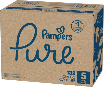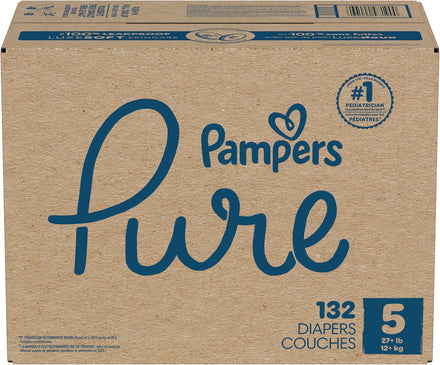 Pampers Pure Protection Baby Diapers, Size 5 (27+ lbs), 132 Count, Up to 100% Leakproof, Premium Plant-based Skin Protection, Hypoallergenic Soft Diapers