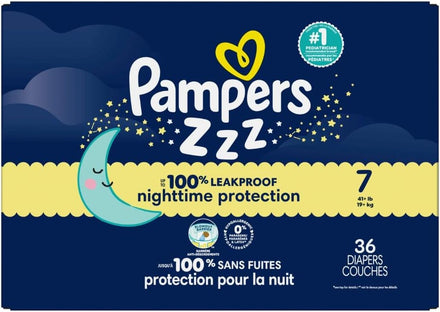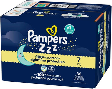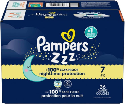 Pampers ZZZ Overnight Diapers, Size 7 (41+ lbs), 36 Count, Nighttime Protection Disposable Baby Diaper, Night Time Leak and Skin Protection