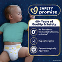 • SAFETY PROMISE: Hypoallergenic & dermatologically accredited by the Skin Health Alliance, these disposable diapers are free from elemental chlorine, parabens, and latex (no natural rubber) for gentle care