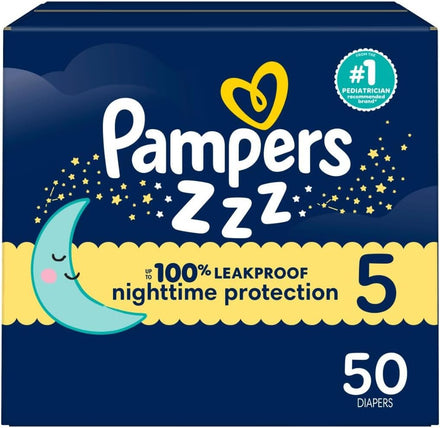 Say goodnight to overnight wakeups and hello to Pampers ZZZ, the overnight diaper designed with extra absorbency for more peaceful nights. These overnight diapers feature 50% more absorbent zones* to help distribute wetness evenly and keep baby's skin dry and comfortable all night long. Pampers ZZZ help keep baby 3X drier** to help your baby sleep through the night. Featuring an All-Around LeakGuard, this baby diaper offers up to 100% blowout and leak protection. These disposable diapers are also made with a Blowout Barrier to help stop leaks even up the back. Plus, gentle protection at the legs to stop leaks from every angle. Pampers ZZZ disposable nighttime diapers are hypoallergenic and free of elemental chlorine, parabens, or latex (no natural rubber). Pampers ZZZ baby diapers are trusted by parents and experts alike and were named the Best Overall Overnight Diaper in 2024 by What to Expect. For trusted protection trust Pampers, the #1 Pediatrician Recommended Brand ***. Pampers ZZZ are available in sizes 3-7. Don’t forget to pair Pampers Diapers with Pampers Sensitive Baby Wipes for clinically proven protection. Download the Pampers Rewards App today and earn Pampers Cash! Redeem your Pampers Cash for exclusive Pampers coupon savings and rewards. Find your baby’s best fit, measure by weight and reference our baby diaper sizes. Pampers ZZZ overnight diapers come in the following sizes: size 3 diapers (16–28 lbs), size 4 diapers (22–37 lbs), size 5 diapers (27+ lbs), size 6 diapers (35+ lbs), and size 7 diapers (41+ lbs). *vs every day of the year brand **vs size 4 leading value brand ***Based on 2023 survey of U.S. and Canadian pediatricians