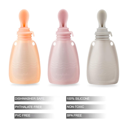 Details: PandaEar 3 Pack Silicone Baby Food Pouches, Reusable Squeeze Pouches for Toddler Kids with 3 Silicone Puree Feeder Spoon, BPA-Free Silicone Refillable Baby Food Storage