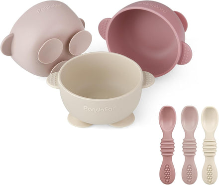 PandaEar Baby Feeding Set includes 3 silicone suction bowls and 3 soft silicone baby spoons, providing the perfect mealtime solution for both babies and parents. The triple suction design ensures the bowls stay securely in place, preventing spills and tipping, while the soft silicone spoons are gentle on delicate gums, making it easier for babies to transition to self-feeding. Made from 100% food-grade silicone, this set is free from BPA, PVC, and harmful substances, ensuring safety and durability. Easy to clean, this set simplifies feeding time, making it a practical and thoughtful choice for baby-led weaning and everyday meals.
