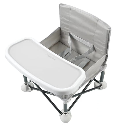 PandaEar Portable Baby Seat Travel| Compact Fold with Straps for Indoor/Outdoor Use| Great for Camping, Beach, Lawn |Toddlers, Kids, Boys, Girls (Grey with Placemat)