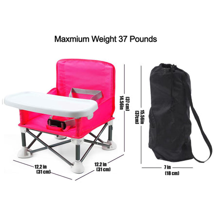 PandaEar Portable Travel Booster Seat with Tray| Folding Baby Seat Booster High Chair for Dining Table| Compact Camping Chair for Lawn, Beach Indoor/Outdoor Use| Toddlers, Kids (Pink)