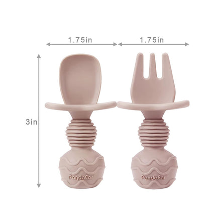 PandaEar Silicone Baby Feeding Set, 2 Pack - Divided Suction Plate, 2 Tiny Cup with Spoons, BPA Free, Light Tan/Pink