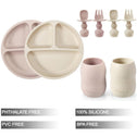 • [ 100% SILICONE 2 BABY PLATES, 2 TODDLER CUPS, 2 BABY FORKS SPOONS SET ] - we have used BPA Free silicone in our silicone baby plate cup spoons production so flavor and taste isn't affected as well as giving you complete peace of mind. This eating supplies for baby is BPA-, PVC-, and phthalates-free, lightweight, and shatter-resistant. Use a bit of water under suction before using for best results.
