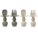 PandaEar Silicone Baby Feeding Set| 2 Pack Silicone Divided Suction Plate and 2 Pack Tiny Cup with 2 Spoons 2 Forks| Baby Led Weaning Supplies Self Feeding Eating Utensils (Light Tan/Walnut)