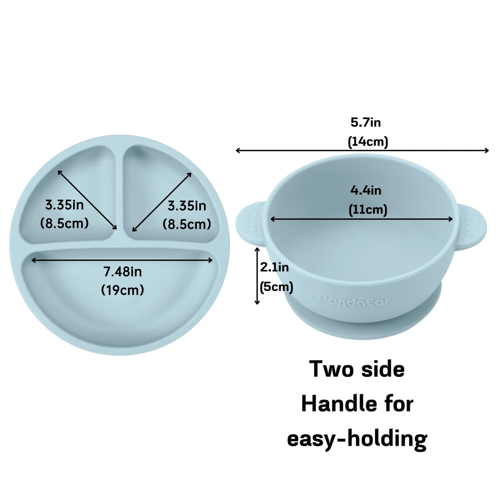 Details: PandaEar Silicone Baby Feeding Set, where safety meets innovation. Our commitment to your baby's well-being is evident in the use of 100% Food Grade Silicone, meeting the rigorous standards of CPSIA Children's Product Approval. This set is not only free from harmful substances like BPA, Phthalates, and PVC but is meticulously crafted with non-toxic, baby-safe materials. Warning: The silicone suction bowl may conform or cling to a baby's face and prevent breathing. Adult supervision is required.