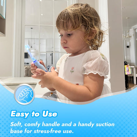 • 【Easy & Safe to Use】Ergonomically designed to fit comfortably in little hands, the Pippin sonic toothbrush comes with a soft, easy-grip handle, a cute penguin head cover, and a fun suction cup base that keeps it upright, clean, and dust-free. Offers great convenience for everyday use & travel.