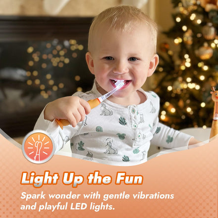 • 【Make Brushing Fun with Ruby】Featuring a cute reindeer design, the Ruby toddler toothbrush brings your child’s imagination to life and makes brushing truly fun! The built-in LED light adds a magical glow that keeps kids interested and helps parents see inside their little one’s mouth. Turn brushing time into a joyful daily routine with mom or dad!