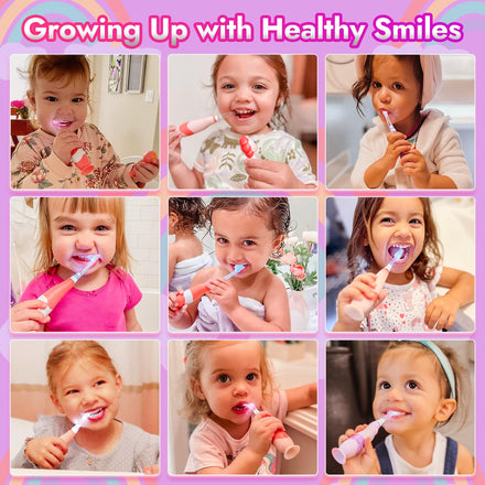 • 【Growing Up with Healthy Smiles】Start young and grow healthy smiles with Arya! Comes with batteries and 4 replacement brush heads. Turn teeth brushing into a fun and effective activity with the Arya toddler sonic electric toothbrush!