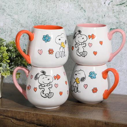 • WHAT'S IN THE BOX: Four Large 20oz stoneware Snoopy belly shaped mugs