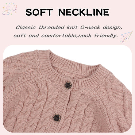 Peecabe Toddler Girl Sweaters Cable Knit Long Sleeve Crewneck Chunky Crochet Cardigans 1-6T (Skin Pink, 1T)