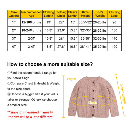 • ♥SIZE INFO: Our toddler girls sweater are suitable for unisex kids between 1 to 4 years old.The recommended age is just for your reference.The stretch of the toddler cardigan may result in a slightly larger size,but it can accompany your little angel in growth!