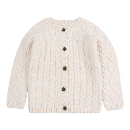 Peecabe Toddler Girl Sweaters Cable Knit Long Sleeve Crewneck Chunky Crochet Cardigans 1-6T (White, 3T)