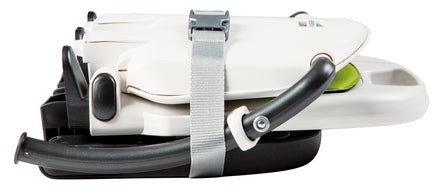 The Rialto is the booster seat that is easy to open, close and carry anywhere. Allowing baby to sit on a grown-up chair, the Rialto is ideal for journeys and outings, as well as at home. With its five position height adjustment, it is suitable for children nine months and up. Included a removable dishwasher-safe folding tray and practical carrying bag. The Rialto is an innovative new booster seat designed to accompany the on-the-go family anywhere. With its compact fold, the Rialto is easily stored in the included carrying bag and offers a great alternative to the typical restaurant high chair. A three-point safety harness secures the child in the Rialto, while holding straps are used to secure the seat to both behind and below the dining chair. Non-skid rubber pads on the base aid in keeping the Rialto in place. The booster seat is outfitted in Prima Classe material that is easy to clean and comes in the three unique gender-neutral colors to complement any kitchen.Non-skid rubber pads keep booster chair in place.