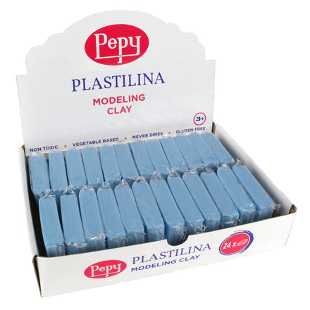 Pepy Plastilina Reusable and Non-Drying Modeling Clay; Set of 24 Bars, 1.4 Ounce Each, Perfect for Arts and Crafts Projects, Light Blue