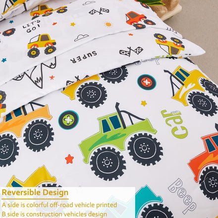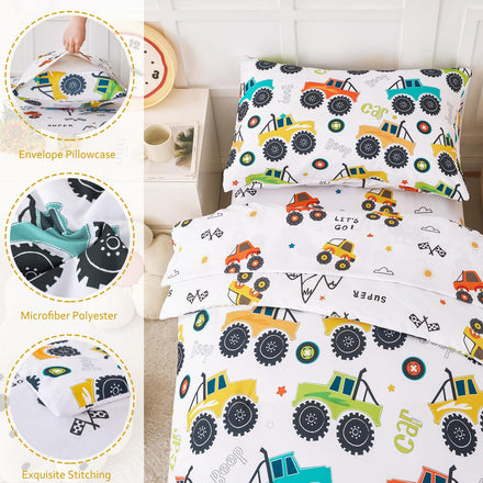 • Lovely design: toddler boys bedding set features with colorful cars printed on white background, cute and full of children interest; the car printed kids comforter captivate the imaginations of little ones while providing cozy comfort, suitable for kids who are passionate about cars and transportation