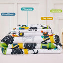 • Double-sided pattern: reversible design toddler boys bed set features with cartoon car printed on both A/B sides, each side tells a different story, stimulating boys' curiosity and desire to explore; this toddler bed in a bag comforter set brings fun and happy to childrens' imaginative world, suitable for all season use