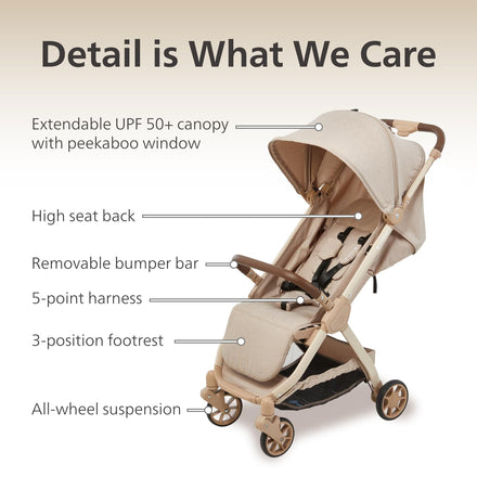 • Enhanced Ventilation: The full-size UV 50 canopy is complemented by a mesh window, providing ventilation while protecting your little one from harmful rays.
