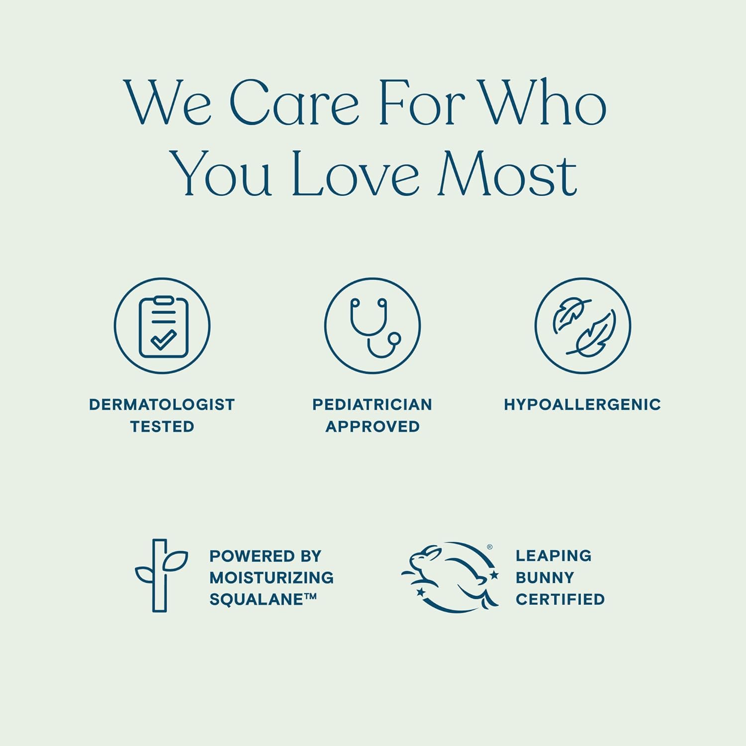 Enjoy our extra gentle, tear-free Baby Shampoo + Wash formula in 2 aroma options and add a little variety to baby's bathtime routine. Including our Fragrance Free Baby Shampoo + Wash for sensitive littles as well as Vanilla + Ylang Ylang for that soft, powdery baby smell we all love. The best part? These baby shampoo aromas are 100% plant-derived, free of synthetic fragrances, and great for baby’s sensitive skin. Our tear-free Baby Shampoo + Wash gently cleanses baby’s delicate skin and hair—and is clinically shown to moisturize skin. This no-tears shampoo is made with our proprietary sugarcane-derived squalane, a hydrating superhero that baby's skin was born to love.