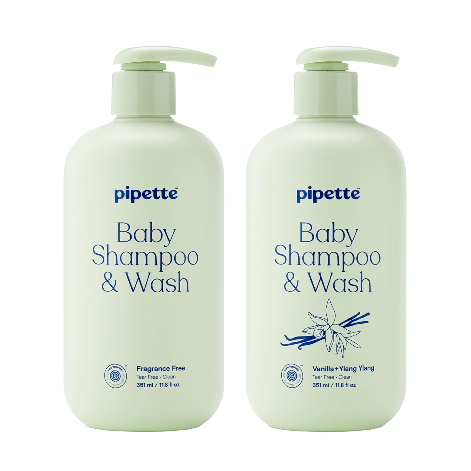 Pipette Baby Shampoo + Wash Discovery Duo, Pack of 2, Includes Fragrance Free and Vanilla + Ylang Ylang Scents, Gentle Tear-Free Newborn Baby Bath Essentials, Non-Toxic, Hypoallergenic