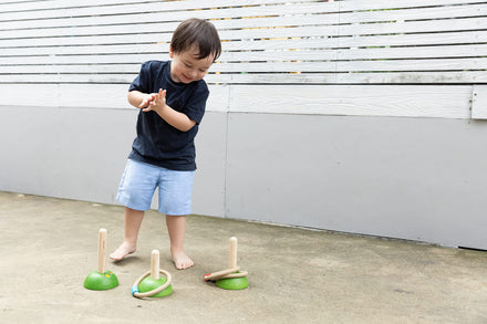 PlanToys® Meadow Ring Toss Wooden Montessori Coordination and Gross Motor Toy | Focus, Aim, Balance and Movement Development Activity | Eco Friendly Outdoor and Indoor Learning Game