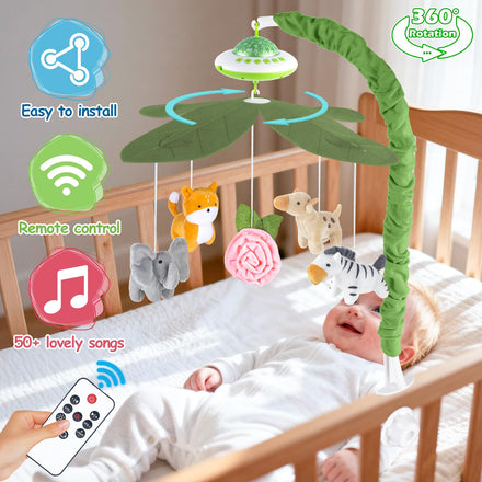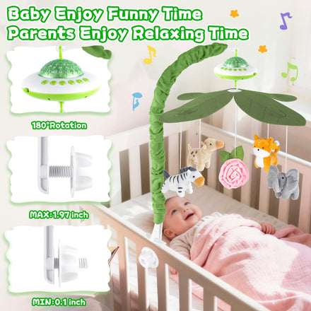 • Transform Your Baby's Sleep Space: Our crib mobile features an enchanting music box with mesmerizing three-color starlight projection (red, green, blue) to create a soothing ambiance for your little one. Watch them drift into dreamland with this delightful baby mobile!
