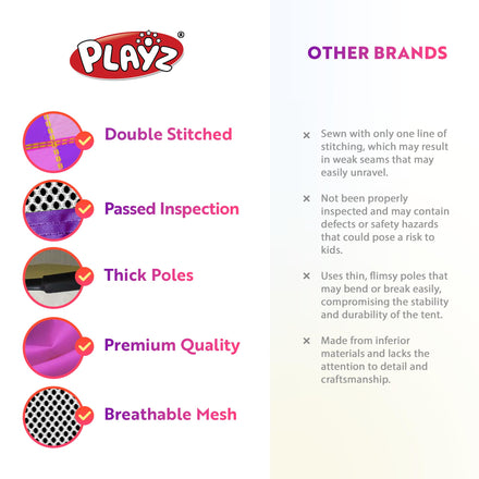 • 100% HAPPINESS, PLAYZ PROMISE Do your research! When you purchase a Playz product, you know the premium quality you will get. We care about the happiness of your kids, so don't settle for anything but the best. If you run across any issues with your Playz pop up tent with ball pit, contact us right away and someone from our USA team will resolve any issues instantly!