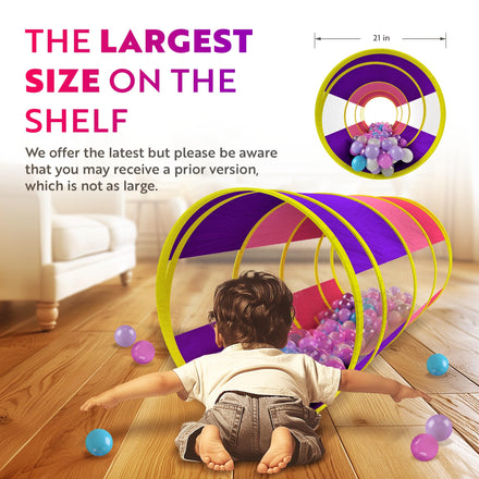 • DREAMY WONDERLAND This 5-piece Premium Prima Princess indoor & outdoor pop up playhouse in Pink, Yellow & Purple shades includes spacious kids play tents, big kids ball pit with basketball hoop, interactive crawl tunnels obstacle course that will keep children entertained for hours. Kids can enjoy endless possibilities by customizing tent and tunnel configurations! A must-have toy for any active kid, toddler, baby, cats & dogs, and even adults.