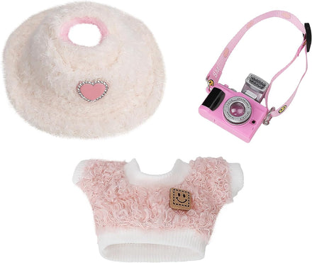 Elevate your vinyl face doll with these exclusive, handcrafted outfits. With 8 stylish designs to choose from, each outfit features adorable accessories like a camera, hat, and glasses for a personalized touch. Made from soft, comfortable materials, these outfits are perfect for adding personality to your plush doll. Whether displayed or hung on your bag, they make a unique gift for any plush figure collector or enthusiast.