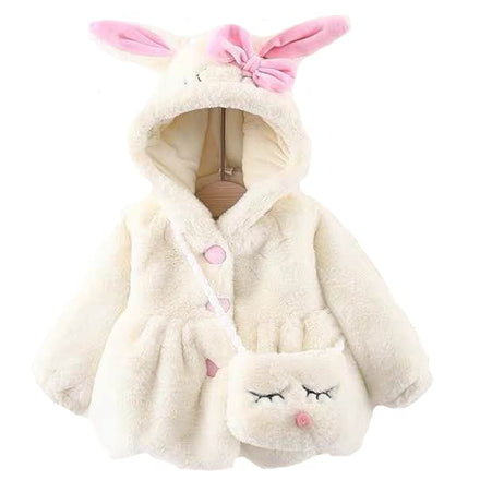 • Features:This baby girl winter coat,baby girl winter jacket,cute bunny design,long ears on hood,faux fur coat, thick, comfy, warm and adorable, baby girls fleece coats.baby girl winter coat.