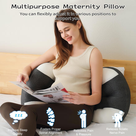 • Ultimate Comfort for Pregnant Women: Our Maternity Pillow is designed to provide unmatched comfort for pregnant women during all stages of pregnancy. The ergonomic shape supports your growing belly, back, hips, and legs, helping you sleep better and wake up refreshed. Whether you're a side sleeper or need extra support for back pain relief, this pregnancy pillow for women adapts to your body, ensuring a restful night's sleep.