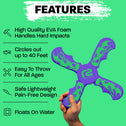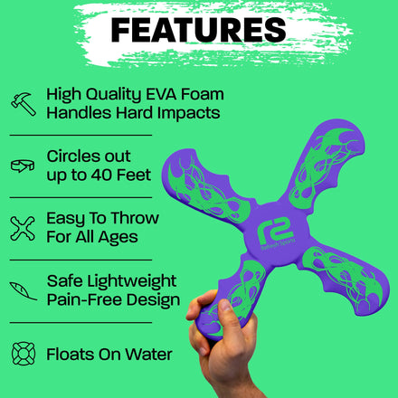 • ๐—ก๐—ฒ๐˜„ & ๐—จ๐—ป๐—ถ๐—พ๐˜‚๐—ฒ ๐—˜๐—ฉ๐—” ๐—™๐—ผ๐—ฎ๐—บ ๐——๐—ฒ๐˜€๐—ถ๐—ด๐—ป - The Boomerang is back! Our Boomerangs set the standard with a unique EVA (Ethylene-Vinyl Acetate Copolymer) Foam not seen elsewhere. Recognized for its durability in sports protection padding and gym tile flooring, this foam ensures strength against wear and tear, hard impacts, and water damage. This isn't just another traditional Boomerang; it's made to easily fly back to you and not hurt your fingers when you catch it.