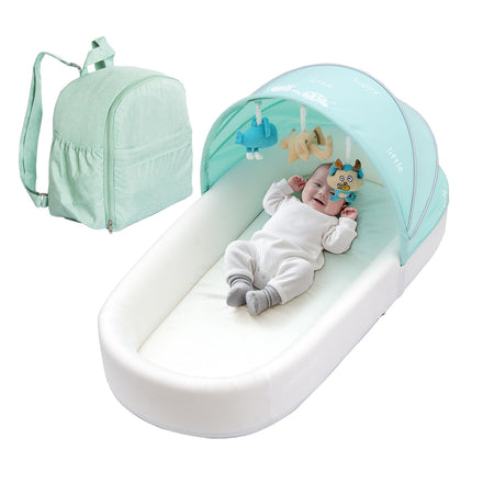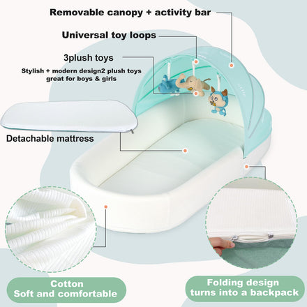 Portable Newborn Nest Lounger-Travel Bassinet,XL co-Sleeper with Canopy & Mosquito Net-Lightweight Foldable Lounger Cotton Cover & Supportive Mattress and Washable, Indoor-Outdoor Use (Green)