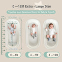 • XL Spacious dimensions: The internal dimensions are approximately 32.5 inches in length and about 34 inches in width, while the external dimensions are 38.2 inches in length and roughly 18 inches in width. The XL size can meet the needs of 97% of infants before the age of 1. It is 4 - 5 inches longer and 3 inches wider than traditional baby baskets, allowing for an extra 2 months of use.