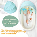 • All-Around Protection and Portable Design:Give your baby the ultimate protection and comfort wherever life takes you! Our premium portable baby nest lounger features a detachable canopy and mosquito net, shielding your little one from harsh sunlight, pesky bugs, and distractions—perfect for indoor naps, outdoor picnics, or family travels. Designed with a lightweight, foldable frame and a convenient carry backpack, it’s a breeze for parents to transport. Whether you’re at home, visiting grandparents, or exploring the park, this baby nest lounger creates a safe, cozy haven for your newborn anytime, anywhere.