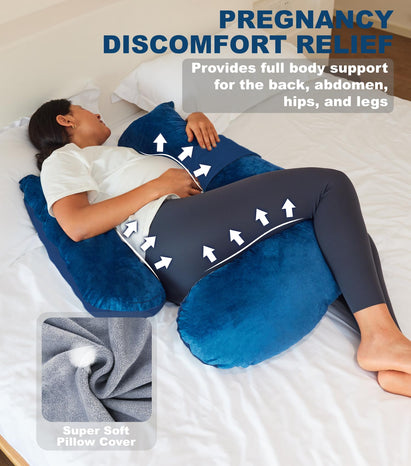 Pregnancy Pillows for Sleeping, Maternity Pillow for Side Sleeper, Support for Back, Legs, Belly, HIPS for Pregnant Women Blue