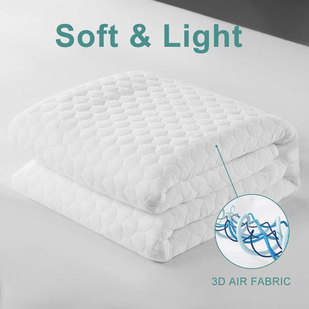 Premium 100% Waterproof Mattress Protector,4D Air Cooling 300GSM Queen Size Mattress Pad Cover,Breathable All-Round 360° Bed Mattress Topper Protection Noiseless Vinyl Free (White,Queen)