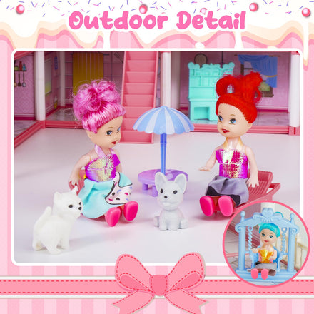 • 【Abundant Doll House Accessories and Furniture】: This playhouses for kids ages 4-8 includes an array of doll house accessories and furniture, such as unique home furnishings, appliances, slides, and adorable puppies. The movable accessories offer endless possibilities for decorating and storytelling, so children can mix and match items to create their dream home. Whether they're imagining a new adventure or redesigning a room, this play set inspires creativity.